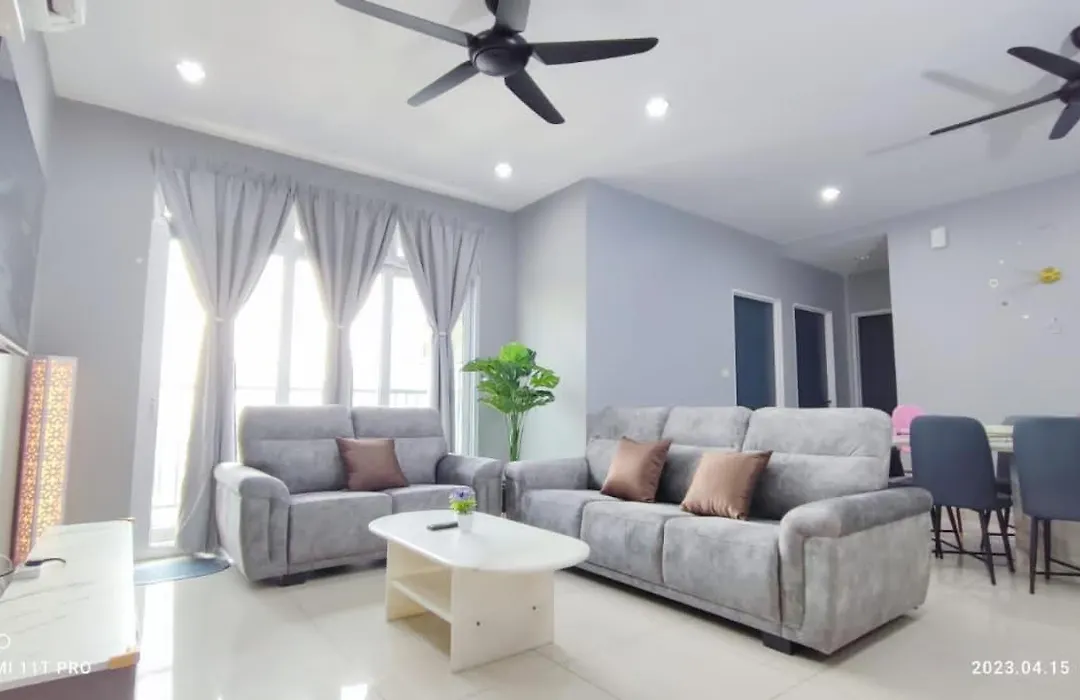 Kakao Homestay Ipoh Town 2Parking 3Room 10Pax Wifi features a sofa set and is equipped with a flat-screen TV with satellite channels, an ironing set, and amenities like climate control. At the property, a separate toilet have been provided to enhance your comfort. A hair dryer and bath sheets are also included in the bathroom.
